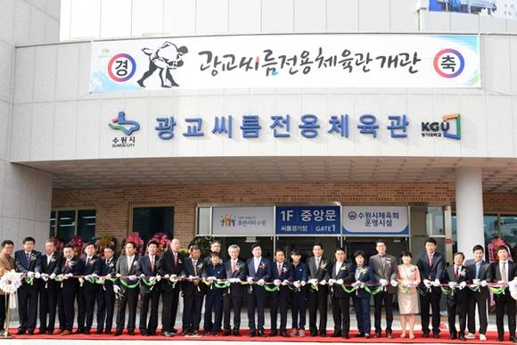 수원시가 27일 수원시 영통구 이의동에서 광교씨름전용체육관을 개관했다. 체육관은 지상 2층, 전체면적 2251㎡로 관중 850명을 수용할 수 있다.
