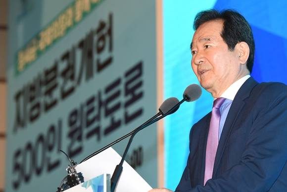 정 의장은 28일 수원에서 열린 지방분권개헌 500인 원탁토론에서 “선진국들은 개헌이나 입법으로 지방분권을 고도화하고 있다”며 “선진국의 공통점은 지방에 많은 권한을 주는 지방분권을 한 것”이라고 설명했다.