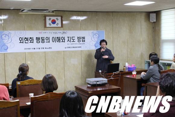 이번 연수는 최근 외현화 행동 성향을 보이는 학생으로 인해 어려움을 겪고 있는 관내 초등학교 교사 20명을 대상으로 강릉 율곡병원 소아·청소년 정신건강 의학과 임성우 전문의가 외현화 행동의 이해, 학교 내 생활지도상의 유의점 및 대상 학생과의 관계 개선에 대한 내용을 중심으로 강연했다.
