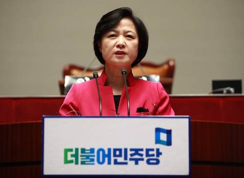 ▲더불어민주당 추미애 대표가 2일 오전 박근혜 대통령의 전격 개각과 관련한 소식이 전해진 직후 열린 의원총회에서 발언하고 있다.(사진-연합뉴스)