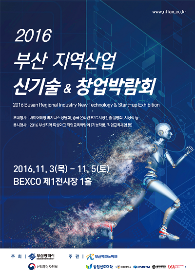 지역 중소벤처기업들이 개발한 신기술을 한눈에 볼 수 있는 '2016 부산 지역산업 신기술&창업박람회'가 11월 3일부터 5일까지 해운대 벡스코에서 열린다.