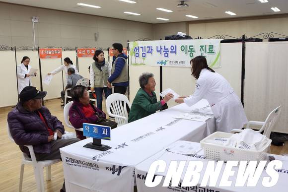 강원대학교·강원대병원·대한결핵협회 강원지부는 3일 인제 서화면 지역을 방문해 무료 진료, 스포츠마사지, 어르신 장수 사진촬영, 결핵 검사, 집 수리, 마을 벽화그리기, 가축 진료 등 사랑의 봉사 활동을 펼쳤다.
