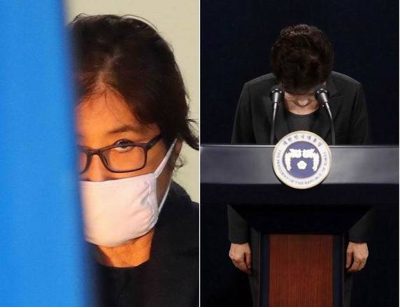 ▲박근혜 대통령의 ‘비선실세’로 군림하다 구속된 최순실씨가 4일 서울중앙지검에서 조사를 마친 뒤 구치소로 돌아가기 위해 호송버스에 탑승하고 있다(왼쪽). 같은 날 박근혜 대통령이 ‘최순실 국정 농단’ 파문에 관한 대국민담화를 마친 뒤 고개 숙여 인사하고 있다. (사진=연합뉴스)