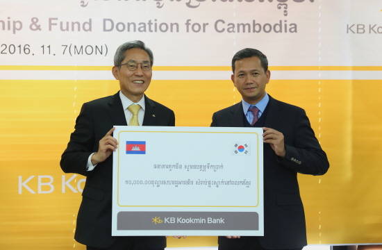 KB국민은행은 7일 여의도 본점에서 캄보디아 훈센장학재단에 기부금 5만달러를 전달했다고 밝혔다.