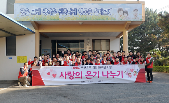 또한 부산은행은 창립 49주년을 기념해 연말까지 다양한 사회공헌 활동을 추진하고 있다. 지역 소외계층의 따뜻한 겨울나기를 위해 총 6천여 세대를 대상으로 '전통시장 상품권 및 전기장판 지원사업'을 실시할 예정이다. 부산 동구 범일 5동의 매축지 마을의 주민생활 개선 활동과 문화마을 조성을 위해 지난해에 이어 1억원을 추가로 지원한다.