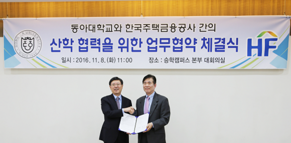 주택금융공사(사장 김재천)와 동아대학교(총장 한석정)는 8일 동아대 승학캠퍼스에서 산학협력 공동연구 업무협약을 체결했다.