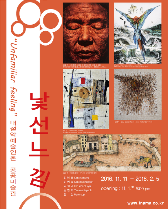 김남표, 김명숙, 김철규, 임만혁, 함섭 등 5인의 작가가 참여해 종이, 천, 목탄, 아크릴, 오일 등 자신만의 특별한 재료를 활용, 독창적인 작품세계를 구현해 현대미술의 다양성을 표현한 기획전 '낯선 느낌'이 11일부터 내년 2월 5일까지 인제 내설악예술인촌 공공미술관에서 열린다.