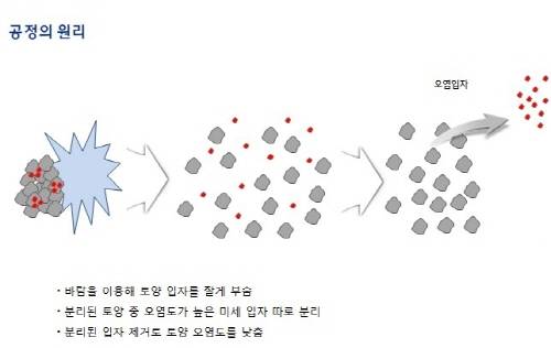 이 환경신기술은 물과 화학약품을 사용하지 않고 바람을 이용해 중금속 오염도가 높은 토양을 분리하는 기술로 공정구성이 간단하여 경제성이 높은 기술이다.