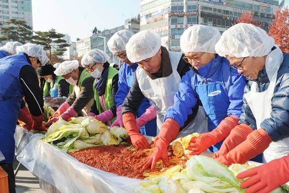 이날 행사는 김장김치 10톤을 지역 내 봉사단체 회원들 및 삼성전자 반도체연구소 임직원들이 직접 담궈 관내 독거어르신, 한부모가정, 장애인시설, 무료 급식소 등 어려운 이웃에게 전달했다.