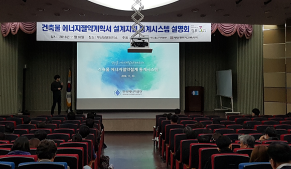 한국에너지공단 부산울산지역본부(본부장 김동수)는 10일 부산건축사협회와 함께 지역 내 건축사 대상 저에너지 건축설계 유도 및 지원을 위한 에너지절약계획서 통계시스템 설명회를 개최했다.