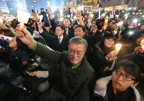 ▲더불어민주당 문재인 전 대표가 12일 오후 서울 광화문 광장에서 열린 박근혜 대통령 퇴진 요구 민중총궐기 촛불집회에 참가하고 있다.(사진= 문재인 전 대표측 제공)