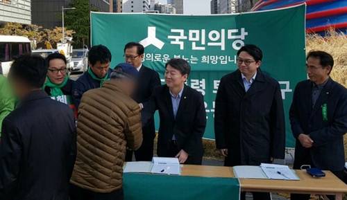국 ▲안철수 국민의당 전 대표가 11일 오후 서울 광화문 청계광장에서 '박근혜 대통령 퇴진'을 위한 거리 서명운동을 하고 있다. 9사진=안철수의원실 제공)