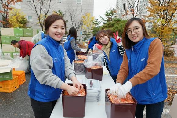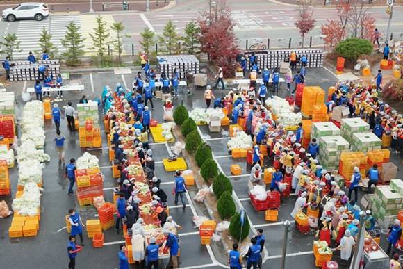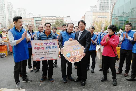 올해로 20년째를 맞는 삼성전자 김장축제는 지난 11월9일부터 14일까지 화성과 용인, 오산, 평택 4개 지역을 돌며 진행됐으며 지난해보다 20톤 늘어난 약 120톤의 김치(3억5000만 원 규모)를 지역사회의 어려운 이웃들에게 전달했다.