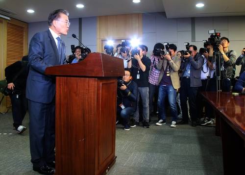 특히 문 전 대표는 회견에서 “이제 민심이 무엇을 원하는지 명약관화해졌다. 광화문 광장에서 쏟아진 ‘이게 나라냐’라는 국민의 통탄은 대통령의 하야만으로는 치유될 수 없는 절망감의 표현”이라며 “대통령 퇴진을 넘어 시대를 교체하고 나라의 근본을 확 바꾸라는 준엄한 명령이고 국민이 주인인 나라, 국민주권이 바로 서는 진정한 민주공화국을 만들자는 국민의 합의”라고 강조했다.