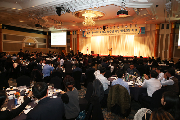 이번 포럼은 개교 70주년을 맞아 동아대 출신인 강병중 넥센그룹 회장이 '모교 발전을 위해 드리는 당부의 말씀과 타이어 외길 50년'이라는 주제로 특별 강연을 1시간가량 펼쳤다. 강 회장은 설립자인 故석당 선생의 교육관과 대학의 70년 역사를 언급하며 모교의 발전을 위해서는 변화와 혁신을 꾀해야 한다고 전했다.