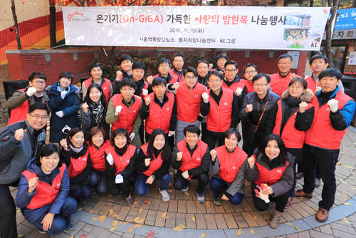 KT그룹 임직원들은 서울시 동자동 쪽방촌 주민들에게 따뜻한 겨울을 선물하기 위해 지난 2주간 자발적으로 방한복과 겨울용품을 기부했다. 해당 물품은 제주를 비롯한 부산, 대구, 전남, 전북, 대전, 강원 등 전국 각지에 있는 KT그룹사 직원들이 기부한 총 1500여 점으로 구성됐다. 이 행사는 지난 2014년 시작해 올해 3회째를 맞았다.