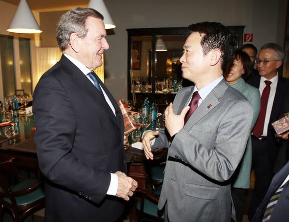 슈뢰더 전 총리는 “새로운 일자리를 만들기 위해서는 창의적인 경제정책이 필요하다”고 강조하며 “경기도가 히든챔피언을 지원해 역량있는 기업의 성장 발판을 마련하는 것은 무척 바람직하다”고 말했다. 뒤이어 진행된 오찬간담회에는 가브리엘 독일 부총리가 자리를 함께했다.
