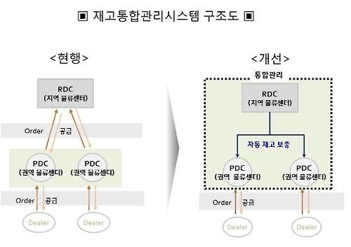 이에 따라 기존 '고객↔딜러↔권역물류센터↔지역물류센터'에서 '고객↔딜러↔권역/지역물류센터 통합관리' 형태로 부품 공급 프로세스가 단축됐다.