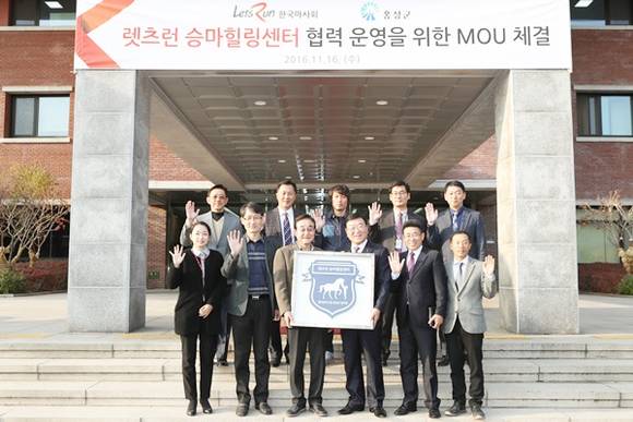 한국마사회가 충남 홍성군과 렛츠런 승마힐링센터 협력 시설 운영을 위해 지난 16일 협약을 체결했다.