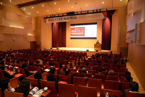 BNK금융그룹(회장 성세환) 부산은행은 18일 오후 본점 대강당에서 부산은행 고객과 시민 등 400여명을 초청해 '저금리 시대, 미래를 향한 자산관리'라는 테마로 '제2회 머니쇼'를 개최했다.