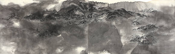 ▲윤영경, '강산무진'. 수묵담채, 93 x 297cm.