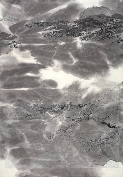 작가는 20대 초반부터 한국산수화에 몰두해 왔다. 4년 전부터는 색을 버리고 수묵만으로 끝없이 이어지는 산줄의 심오한 매력을 그린다.