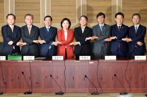 민주당 문 전 대표, 국민의당 안 전 대표, 박원순 서울시장, 안희정 충남지사, 민주당 김부겸 의원, 이재명 성남시장, 국민의당 천정배 전 대표, 정의당 심상정 상임대표 등 야권 잠룡 8명은 이날 국회에서 회동해 검찰 발표를 통해 박 대통령이 구속될만한 충분한 사유가 확인됐다면서 국민적 퇴진운동과 병행해 탄핵 추진을 논의해 것을 야 3당과 국회에 요청한다는 합의 사항을 발표했다.