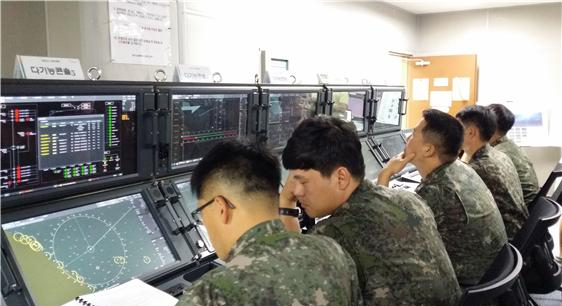 ▲장보고-Ⅰ 성능개량 통합전투체계 운용자화면 확인 시험 모습.