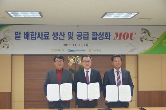 경기농협과 경기도말산업발전협의회, 수원축산농협은 지난 21일 농협중앙회 경기지역본부에서 말 배합사료 생산 및 공급 활성화 업무협약을 체결했다.