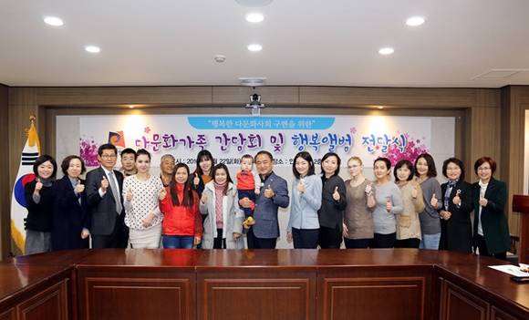 행복앨범 전달식 후에는 참석한 결혼이민자 및 다문화가정 간담회를 열어 한국생활 중 겪었던 어렵고 힘들었던 일과 재미있는 일, 건의사항 등을 이야기하고 청취하는 시간을 가졌다.