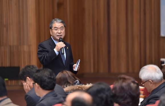 이재정 경기도교육감이 22일 오후 경기도교육청 다산관에서 열린 2017 학생중심 창의적 학교교육과정 편성을 위한 초등학교장 협의회에 참석해 교장선생님들과 소통의 시간을 가졌다.