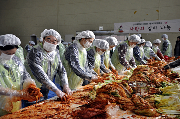 신라대 사회봉사센터(센터장 이범진·웰빙체육학부 교수)는 25일 교내 체육관에서 김치 1190kg을 직접 만들어 사상구장애인복지관 등 지역 16개 단체에 전달했다고 28일 밝혔다.