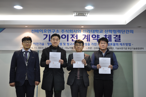 이날 기술이전은 신라대 산학협력단과 선바이오연구소 주식회사 간 가족회사 체결을 통한 산업자문 등 지속적인 산학협력과 연구교류를 토대로 추진됐다.