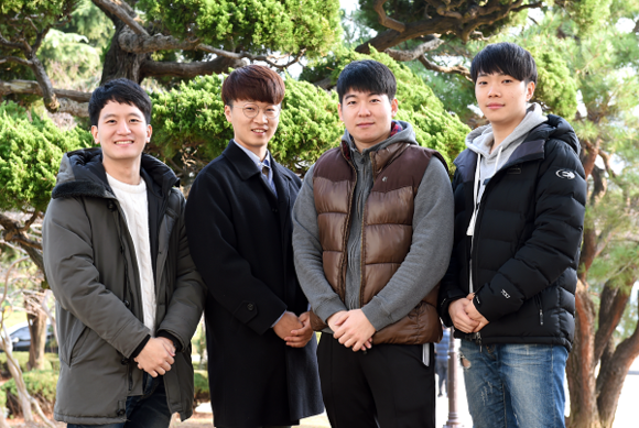 ▲'2016 제4회 HVAC 경진대회'에서 금상을 수상한 부경대 (왼쪽부터) 전선수, 이준호, 박재현, 김경훈 학생. (사진=부경대)