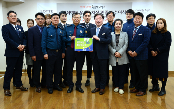 롯데백화점 부산본점(송정호 점장)은 14일 부산진경찰서 범죄예방진단팀으로부터 '범죄 예방 우수 시설' 인증패를 받았다. 이번 인증은 여성 치안 불안을 최소화하고 백화점, 대형마트 주차장 등에 부산진경찰서 범죄예방진단팀이 현장을 방문해 관리 운영 체계, 범죄 예방 디자인, 방범 및 안전 시설 등 체크리스트 진단을 통하여 총점 80% 이상인 경우 선정 가능하며, 2년마다 재인증을 해주는 제도다. (사진=롯데백화점)