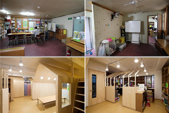 ▲HUG, 부산시, 부산국제건축문화제의 'HOPE with HUG' 프로젝트를 통해 새롭게 거듭난 동래구 온천동 '사랑의 샘' 지역아동센터(상단: 시공 전, 하단: 시공 후). (사진=HUG)