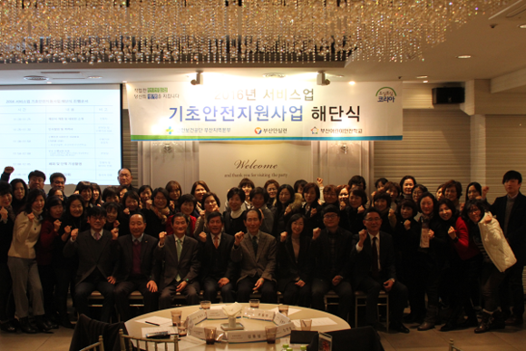 안전보건공단 부산지역본부(본부장 김병진)는 15일 더파티 범일점에서 '2016년도 서비스업 재해예방 기초안전지원사업' 수행요원 해단식을 가졌다.