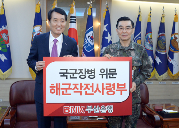 BNK금융그룹(회장 성세환) 부산은행은 23일 해군작전사령부를 방문해 장병들의 노고에 감사의 뜻을 전하고 위문금을 전달했다.
