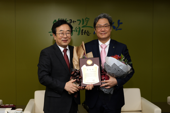 ▲오른쪽부터 임학 고신대복음병원장, 서병수 부산시장. (사진=고신대복음병원)