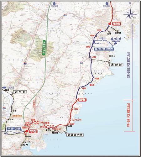 ▲동해선 부전~일광 구간 복선전철 노선도. (사진=부산시)