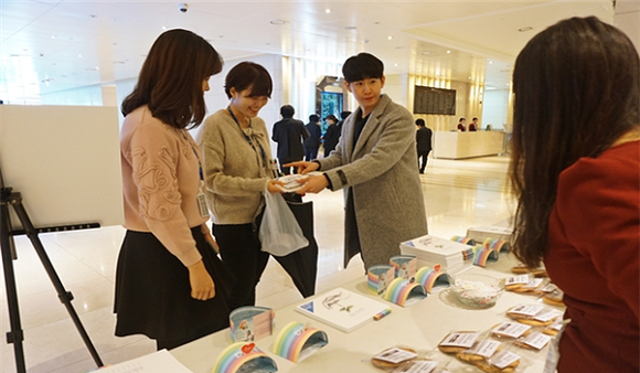 주택도시보증공사(HUG, 사장 김선덕)는 연말을 맞아 사회공헌활동에 대한 대내외 관심을 유도하고 나눔문화 확산에 기여하고자 29일 부산국제금융센터 1층에서 'HUG 레인보우' 사회공헌활동 캠페인 행사를 열었다.
