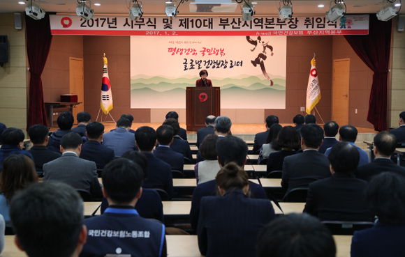 국민건강보험공단 부산지역본부는 2일 오후 본부 대강당에서 2017년 시무식 및 제10대 김선옥 신임 본부장(53)의 취임식을 가졌다.