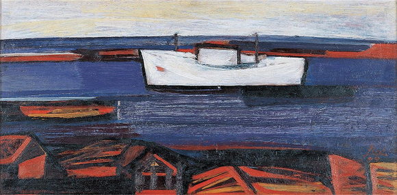 ▲김종식 作 <부산항 겨울>(함석에 유채, 31.8x62.5cm, 1949). (사진=부산시립미술관)