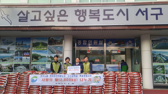 고신대복음병원 노동조합(지부장 노귀영)이 최근 부산시 서구청에서 주관하는 '사랑의 띠잇기' 행사에 참여해 받은 쌀 2.8톤을 전달했다.