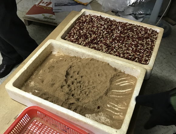 ▲지네로 만든 분말캡슐 단속 현장. (사진=부산경찰)