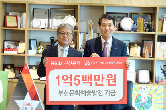 BNK금융그룹(회장 성세환) 부산은행이 지역 문화예술 발전을 위해 (사)부산예술문화단체총연합회(이하 부산예총)와 28일 부산은행 본점에서 연간 1억 500만원을 후원하는 '문화예술 발전기금 전달식'을 가졌다.