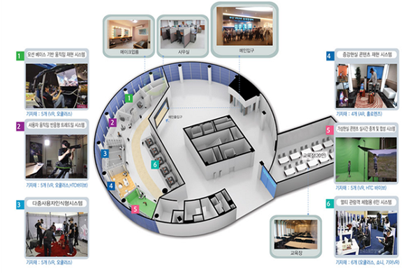 부산 가상증강현실 융복합센터는 벡스코 사무동 1층에 위치하고 있으며, 전용면적 1070m2 규모로 VR·AR 콘텐츠 기획·제작·시연·체험·교육·유통 등이 원스톱으로 지원 되는 공간이다. 기업간 거래(B2B)를 확대하기 위하여 스타트업, 예비창업자 등 누구나 시설, 장비, 교육을 지원한다. 일반 시민들에게도 직접 할 수 있는 기회도 제공한다.