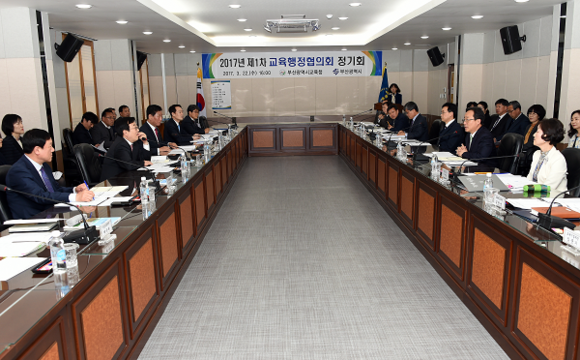 부산시교육청과 부산시는 22일 오후 4시 시교육청 2층 전략회의실에서 올해 첫 교육행정협의회를 열어 '교육격차 완화를 위한 사회·경제적 취약지역의 교육협력사업 강화' 등 6개 안건에 대해 상호 협력 방안을 논의했다.