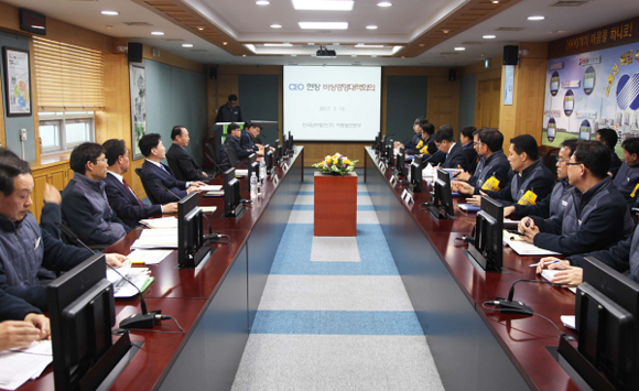 ▲남부발전 윤종근 사장이 하동발전본부에서 비상경영대책회의를 주재하고 있다. (사진=남부발전)