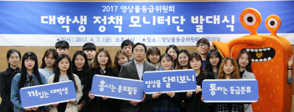 영상물등급위원회(위원장 이경숙)은 7일 위원회 대회의실에서 '2017 대학생 정책모니터단' 발대식을 개최하고, 모니터단 20명을 위촉했다.